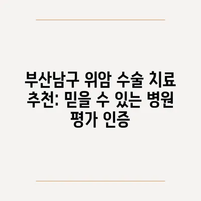 부산남구 위암 수술 치료 추천: 믿을 수 있는 병원 평가 인증