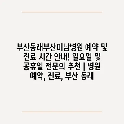 ✅ 부산동래부산미남병원 예약 방법과 진료 시간을 쉽게 알아보세요.