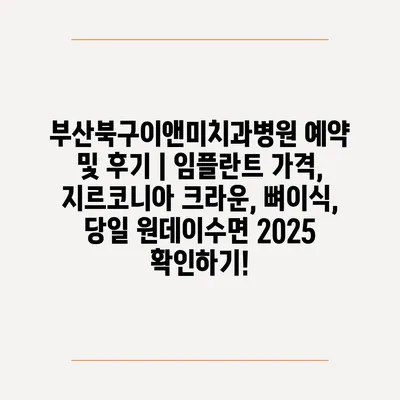 부산북구이앤미치과병원 예약 및 후기 | 임플란트 가격, 지르코니아 크라운, 뼈이식, 당일 원데이수면 2025 확인하기!