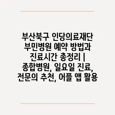 부산북구 인당의료재단 부민병원 예약 방법과 진료시간 총정리 | 종합병원, 일요일 진료, 전연락 추천, 어플 앱 활용 에 대해 자주 묻는 질문 TOP 5
