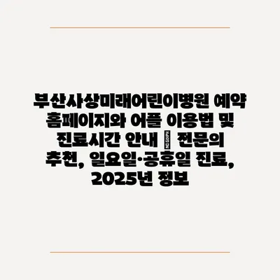 부산사상미래어린이병원 예약 홈페이지와 어플 이용법 및 진료시간 공지 | 전연락 추천, 일요일·공휴일 진료, 2025년 정보 에 대해 자주 묻는 질문 TOP 5