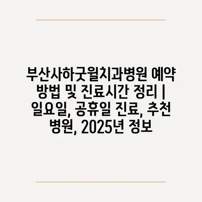 부산사하굿윌치과병원 예약 방법 및 진료시간 정리 | 일요일, 공휴일 진료, 추천 병원, 2025년 정보 에 대해 자주 묻는 질문 TOP 5