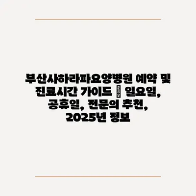 부산사하라파요양병원 예약 및 진료시간 설명서 | 일요일, 공휴일, 전연락 추천, 2025년 정보 에 대해 자주 묻는 질문 TOP 5