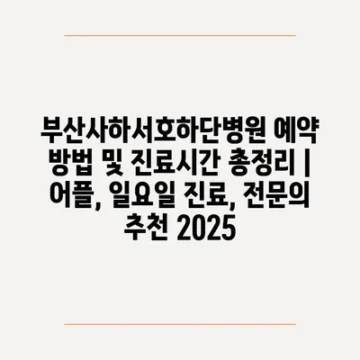 부산사하서호하단병원 예약 방법 및 진료시간 총정리 | 어플, 일요일 진료, 전연락 추천 2025 에 대해 자주 묻는 질문 TOP 5