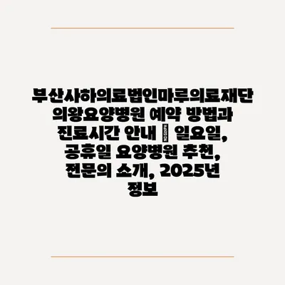 부산사하의료법인마루의료재단 의왕요양병원 예약 방법과 진료시간 공지 | 일요일, 공휴일 요양병원 추천, 전연락 소개, 2025년 정보 에 대해 자주 묻는 질문 TOP 5