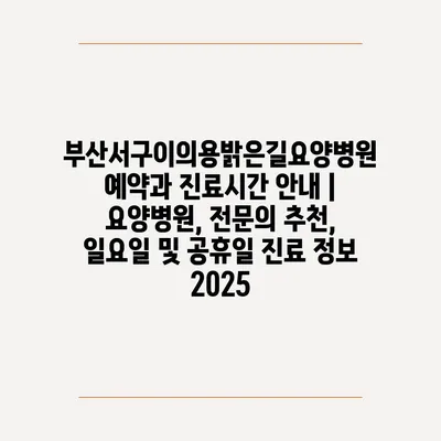 부산서구이의용밝은길요양병원 예약과 진료시간 공지 | 요양병원, 전연락 추천, 일요일 및 공휴일 진료 정보 2025 에 대해 자주 묻는 질문 TOP 5