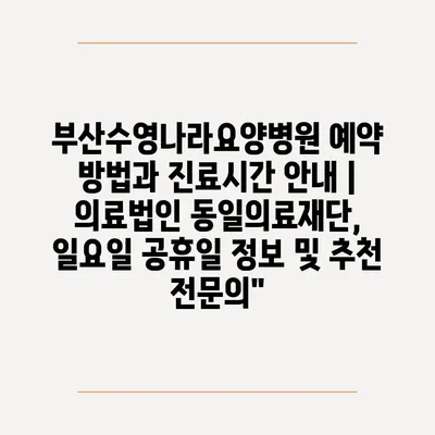 부산수영나라요양병원 예약 방법과 진료시간 공지 | 의료법인 동일의료재단, 일요일 공휴일 정보 및 추천 전연락에 대해 자주 묻는 질문 TOP 5