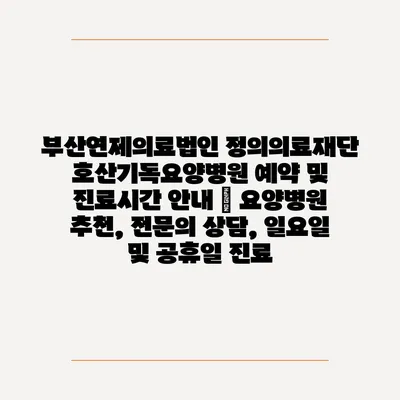 부산연제의료법인 정의의료재단 호산기독요양병원 예약 및 진료시간 공지 | 요양병원 추천, 전연락 상담, 일요일 및 공휴일 진료 에 대해 자주 묻는 질문 TOP 5