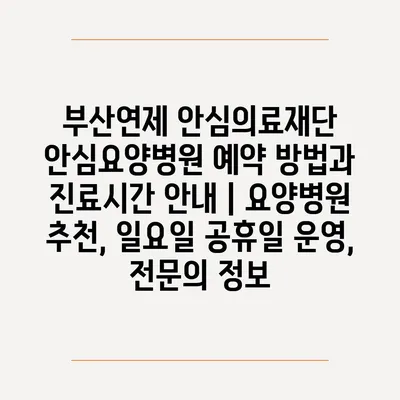 ✅ 부산연제 안심의료재단의 진료시간 및 예약 방법을 지금 알아보세요!