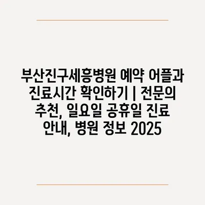 부산진구세흥병원 예약 어플과 진료시간 확인하기 | 전연락 추천, 일요일 공휴일 진료 공지, 병원 정보 2025 에 대해 자주 묻는 질문 TOP 5