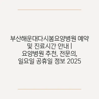 부산해운대다시봄요양병원 예약 및 진료시간 안내 | 요양병원 추천, 전문의, 일요일 공휴일 정보 2025