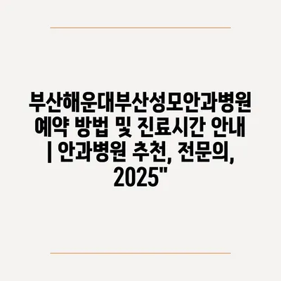 부산해운대부산성모안과병원 예약 방법 및 진료시간 안내 | 안과병원 추천, 전문의, 2025″