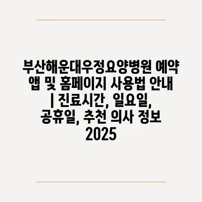 부산해운대우정요양병원 예약 앱 및 홈페이지 사용법 공지 | 진료시간, 일요일, 공휴일, 추천 의사 정보 2025에 대해 알아보겠습니다.