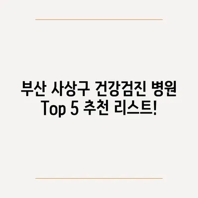 부산 사상구 건강검진 병원 Top 5 추천 리스트!