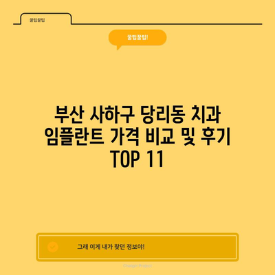 💡 부산 사하구 당리동의 임플란트 가격을 한눈에 비교해 보세요! 💡