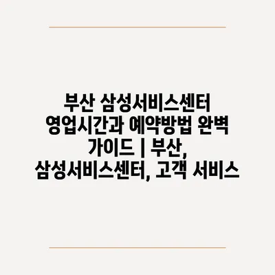 부산 삼성서비스센터 영업시간과 예약방법 완벽 가이드 | 부산, 삼성서비스센터, 고객 서비스