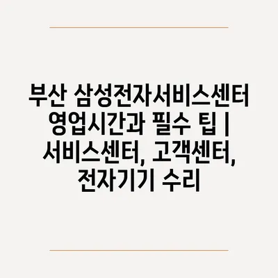 부산 삼성전자서비스센터 영업시간과 필수 팁 | 서비스센터, 고객센터, 전자기기 수리 에 대해 자주 묻는 질문 TOP 5