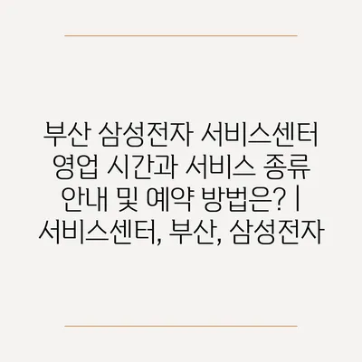 부산 삼성전자 서비스센터 영업 시간과 서비스 종류 공지 및 예약 방법은?