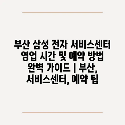 부산 삼성 전자 서비스센터 영업 시간 및 예약 방법 완벽 설명서 | 부산, 서비스센터, 예약 팁 에 대해 자주 묻는 질문 TOP 5