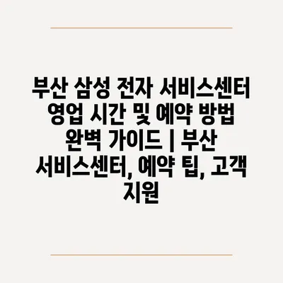 부산 삼성 전자 서비스센터 영업 시간 및 예약 방법 완벽 설명서 | 부산 서비스센터, 예약 팁, 고객 지원 에 대해 자주 묻는 질문 TOP 5