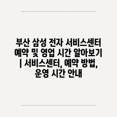 부산 삼성 전자 서비스센터 예약 및 영업 시간 알아보기 | 서비스센터, 예약 방법, 운영 시간 안내