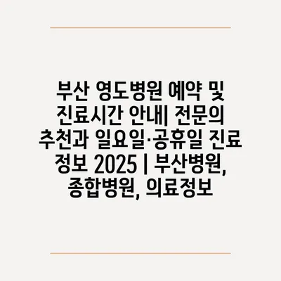 부산 영도병원 예약 및 진료시간 안내| 전문의 추천과 일요일·공휴일 진료 정보 2025 | 부산병원, 종합병원, 의료정보