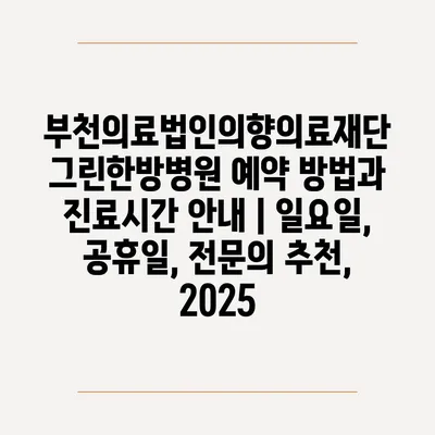 부천의료법인의향의료재단 그린한방병원 예약 방법과 진료시간 공지 | 일요일, 공휴일, 전연락 추천, 2025 에 대해 자주 묻는 질문 TOP 5