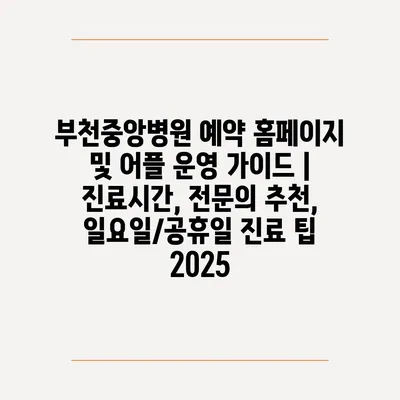 부천중앙병원 예약 홈페이지 및 어플 운영 가이드 | 진료시간, 전문의 추천, 일요일/공휴일 진료 팁 2025