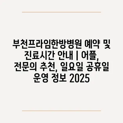 부천프라임한방병원 예약 및 진료시간 공지 | 어플, 전연락 추천, 일요일 공휴일 운영 정보 2025 에 대해 자주 묻는 질문 TOP 5