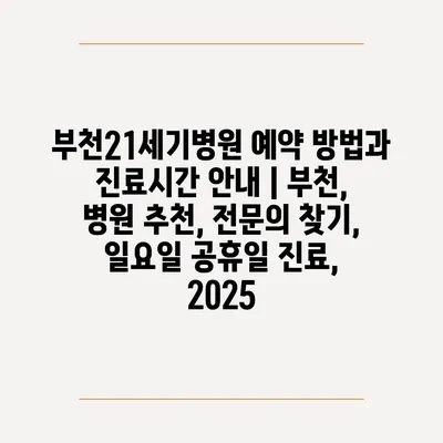 부천21세기병원 예약 방법과 진료시간 공지 | 부천, 병원 추천, 전연락 찾기, 일요일 공휴일 진료, 2025 에 대해 자주 묻는 질문 TOP 5