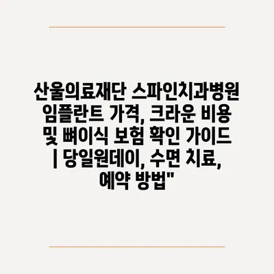 산울의료재단 스파인치과병원 임플란트 가격, 크라운 비용 및 뼈이식 보험 확인 가이드 | 당일원데이, 수면 치료, 예약 방법”