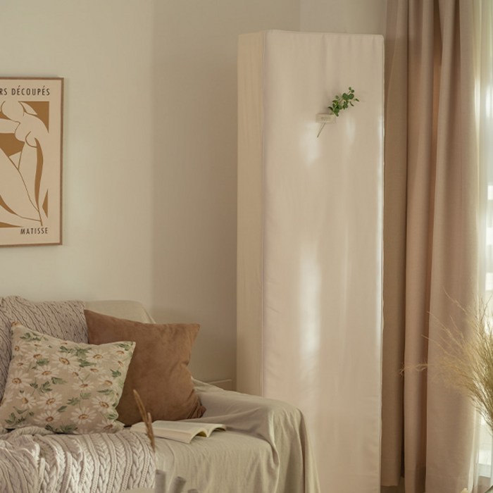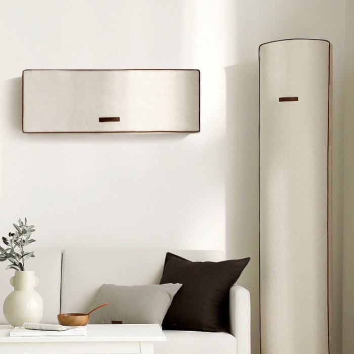 2in1 비침없는 에어컨커버, 스탠드 원형+벽걸이 트라이앵글(아이보리)