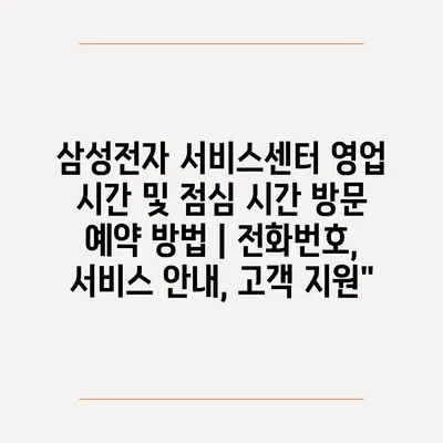 ✅ 삼성전자 서비스센터의 정확한 영업시간과 방문 방법을 지금 알아보세요.