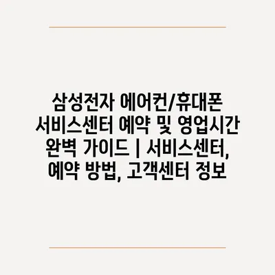 삼성전자 에어컨/휴대폰 서비스센터 예약 및 영업시간 완벽 설명서 | 서비스센터, 예약 방법, 고객센터 정보