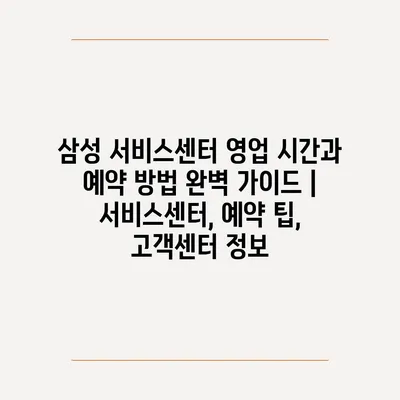 삼성 서비스센터 영업 시간과 예약 방법 완벽 설명서 | 서비스센터, 예약 팁, 고객센터 정보에 대해 자주 묻는 질문 TOP 5