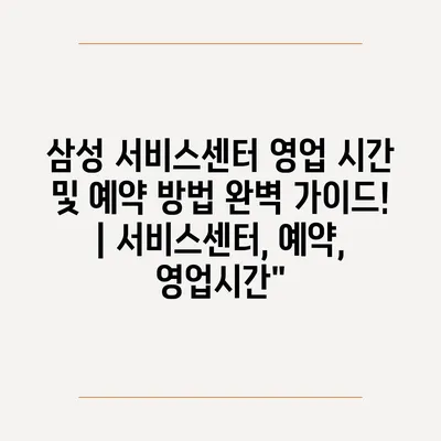 ✅ 삼성 서비스센터의 영업 시간과 예약 방법을 쉽게 알아보세요.