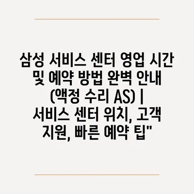 삼성 서비스 센터 영업 시간 및 예약 방법 완벽 공지 (액정 수리 AS) | 서비스 센터 위치, 고객 지원, 빠른 예약 팁