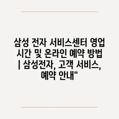 삼성 전자 서비스센터 영업 시간 및 온라인 예약 방법 | 삼성전자, 고객 서비스, 예약 공지
