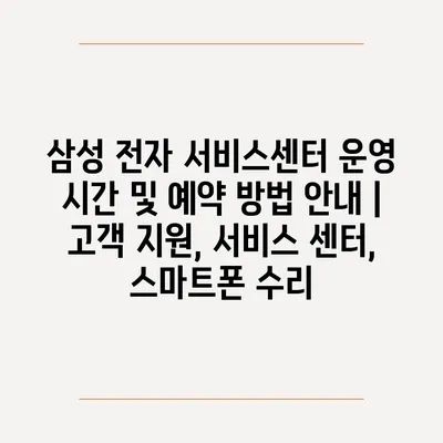 “삼성 전자 서비스센터 운영 시간은 정확히 확인하는 것이 중요합니다.”
