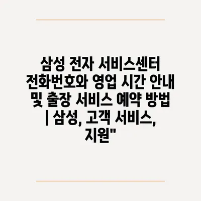 삼성 전자 서비스센터의 전화번호와 영업 시간, 출장 서비스 예약 방법을 알아보세요.
