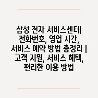 삼성 전자 서비스센터| 전화번호, 영업 시간, 서비스 예약 방법 총정리 | 고객 지원, 서비스 혜택, 편리한 이용 방법에 대해 자주 묻는 질문 TOP 5
