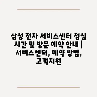 ✅ 삼성 전자 서비스센터의 점심 시간과 예약 방법을 지금 바로 알아보세요.