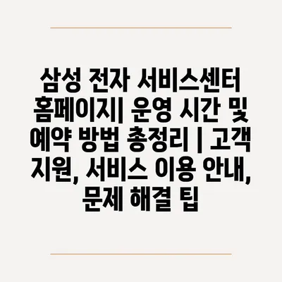 ✅ 삼성 전자 서비스센터 운영 시간과 예약 방법을 쉽게 알아보세요.