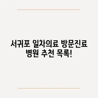 💡 서귀포에서 꼭 가봐야 할 병원 리스트를 확인해 보세요! 💡