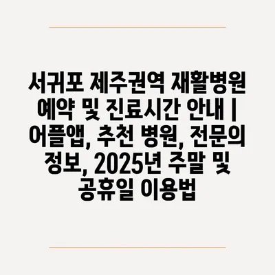 서귀포 제주권역 재활병원 예약 및 진료시간 공지 | 어플앱, 추천 병원, 전연락 정보, 2025년 주말 및 공휴일 이용법 에 대해 자주 묻는 질문 TOP 5