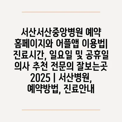 ✅ 서산서산중앙병원 예약 방법을 지금 바로 확인하세요!