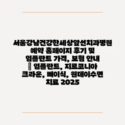 서울강남건강한세상앞선치과병원 예약 홈페이지 후기 및 임플란트 가격, 보험 공지 | 임플란트, 지르코니아 크라운, 뼈이식, 원데이수면 치료 2025 에 대해 자주 묻는 질문 TOP 5