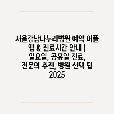 서울강남나누리병원 예약 어플 앱 & 진료시간 공지 | 일요일, 공휴일 진료, 전연락 추천, 병원 선택 팁 2025에 대한 내용을 소개합니다.