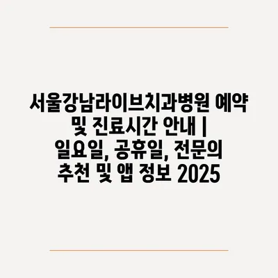 서울강남라이브치과병원 예약 및 진료시간 안내 | 일요일, 공휴일, 전문의 추천 및 앱 정보 2025