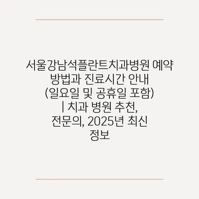 서울강남석플란트치과병원 예약 방법과 진료시간 공지 (일요일 및 공휴일 포함) | 치과 병원 추천, 전연락, 2025년 최신 정보 에 대해 자주 묻는 질문 TOP 5